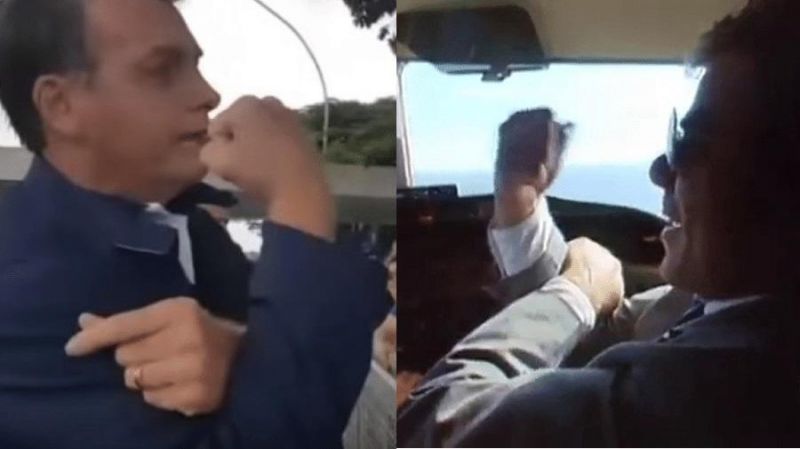 Ao sobrevoar o país, ele ainda chega a fazer uma "banana" com os braços para o povo brasileiro. O mesmo gesto foi feito por Bolsonaro durante uma live há algum tempo.